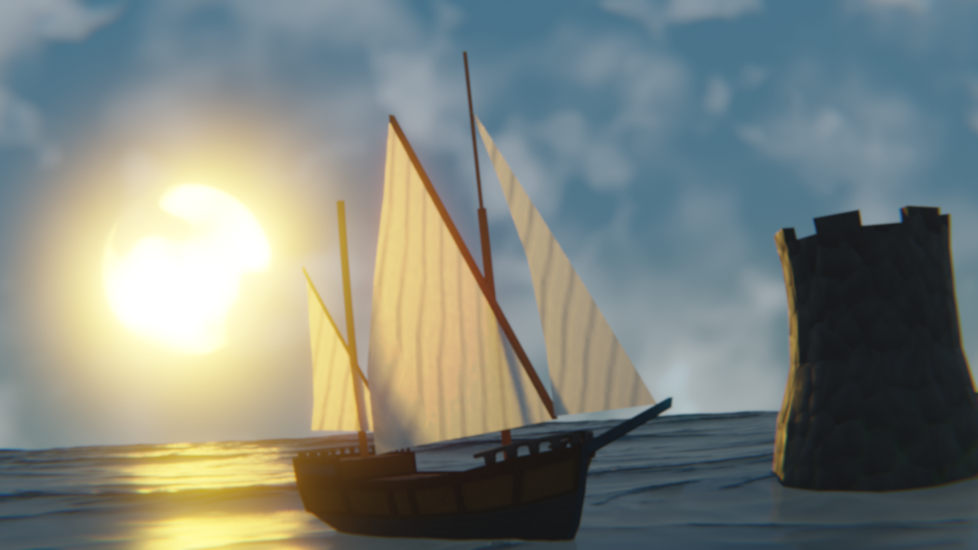 Es por eso que decidí tomar como referencia una de las imágenes del juego para intentar reproducir un barco similar y poner a prueba mi habilidad con las texturas procedurales.
